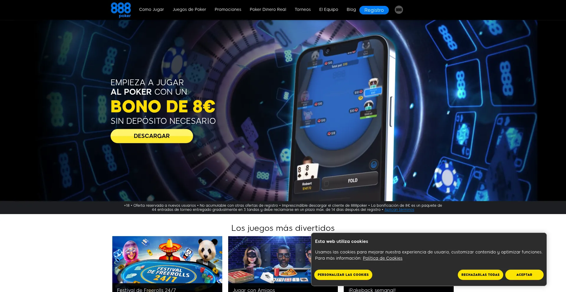 The website implements cookie consent mechanisms in compliance with privacy regulations such as GDPR or CCPA. This demonstrates that 888poker.es adheres to data protection standards and provides users with control over personal data collection practices.
