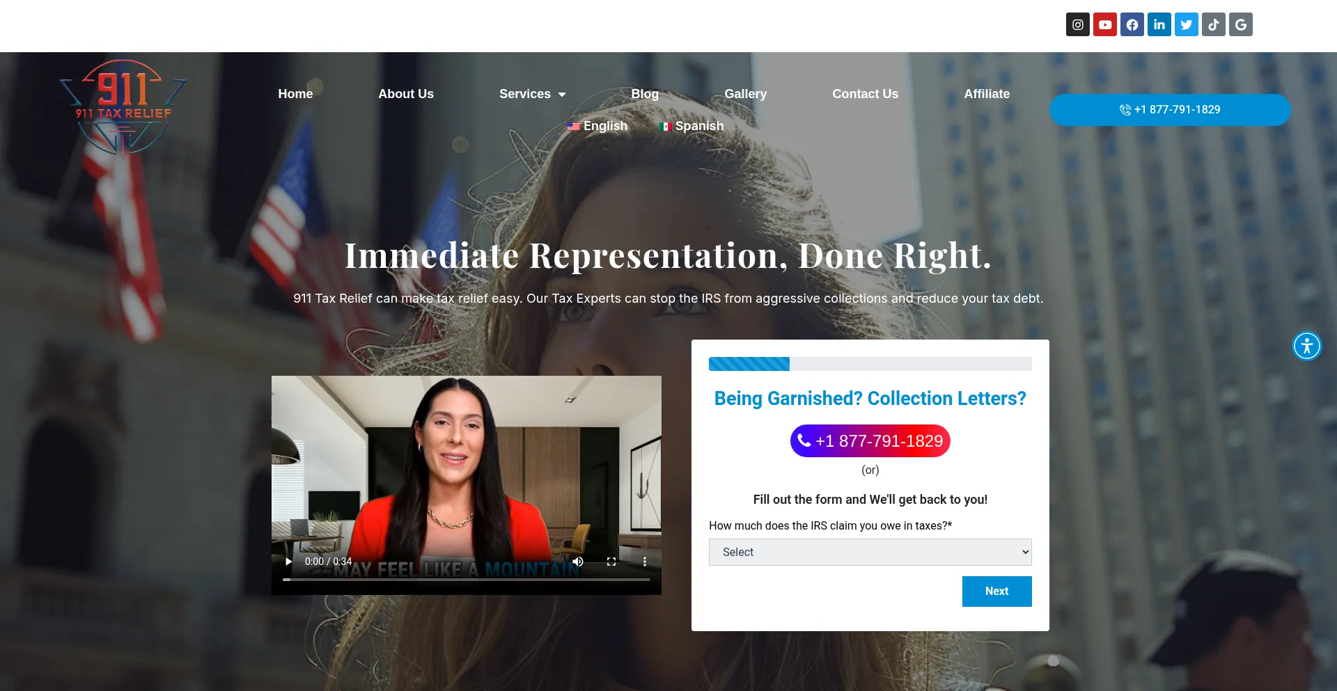 The 911taxrelief.com website employs search engine optimization (SEO) techniques to improve its visibility and ranking in search engine results pages (SERPs).