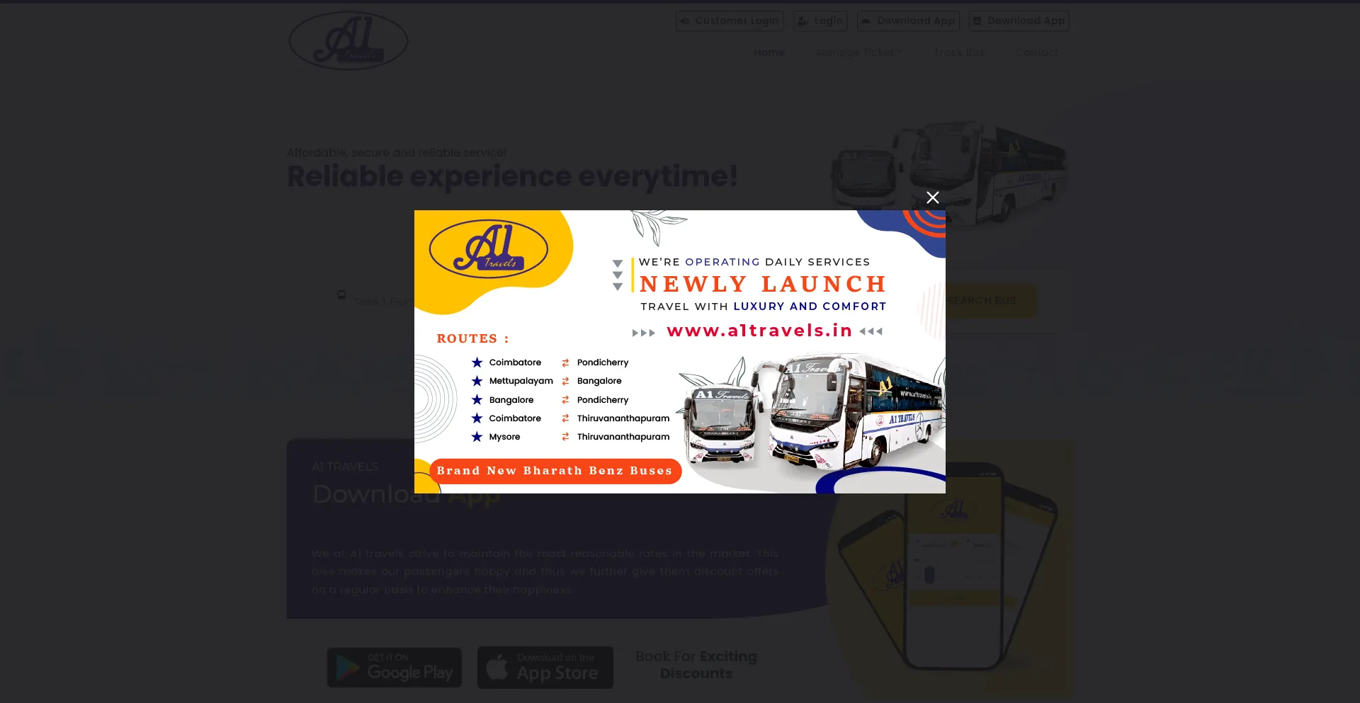 Book online bus tickets to Adoor, Bangalore, Calicut, Chennai, Coimbatore, Ernakulam, Kottayam, Tirunelveli, Trivandrum with lowest fare and instant offers in A1 travels.