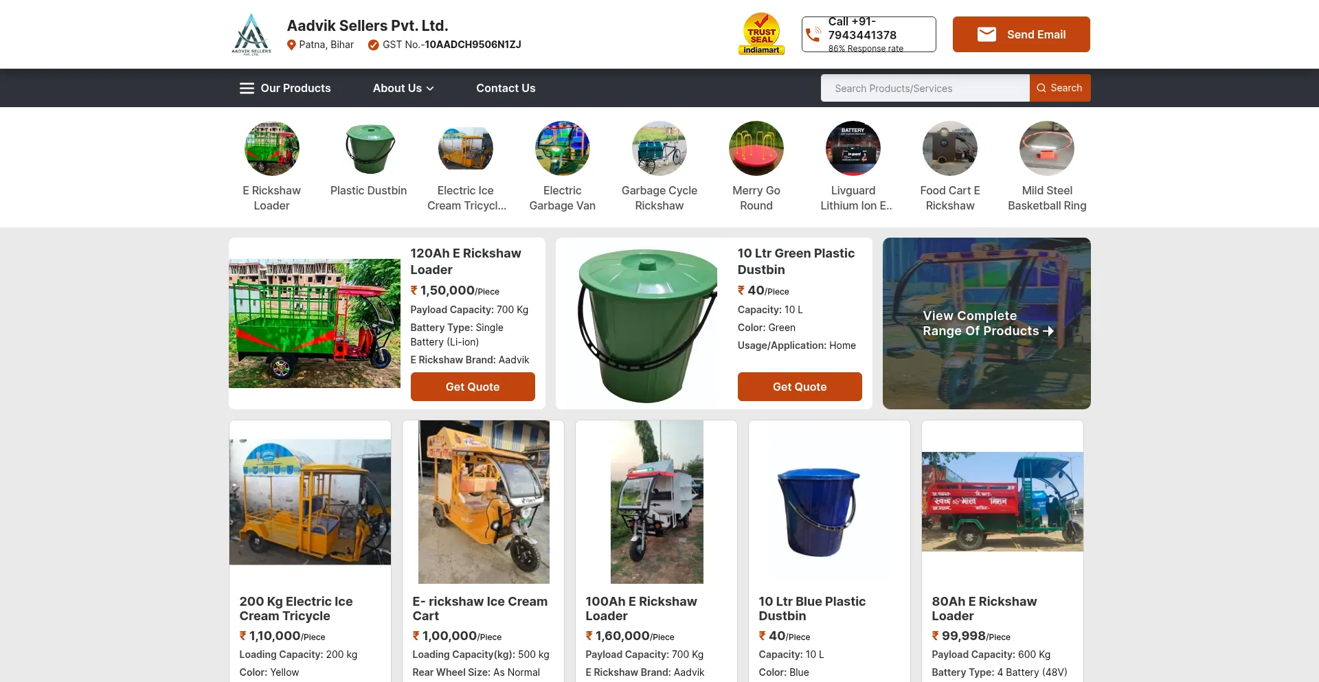 Aadvik Sellers Pvt. Ltd. - Service Provider of E Rickshaw Loader & Plastic Dustbin from Patna