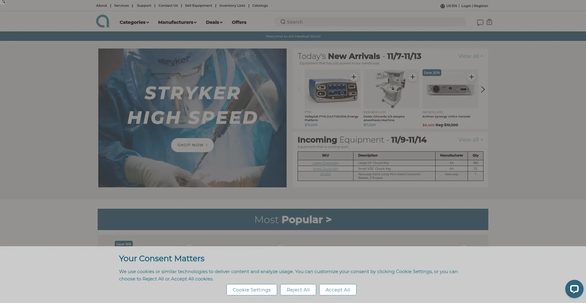The website implements cookie consent mechanisms in compliance with privacy regulations such as GDPR or CCPA. This demonstrates that aamedicalstore.com adheres to data protection standards and provides users with control over personal data collection practices.