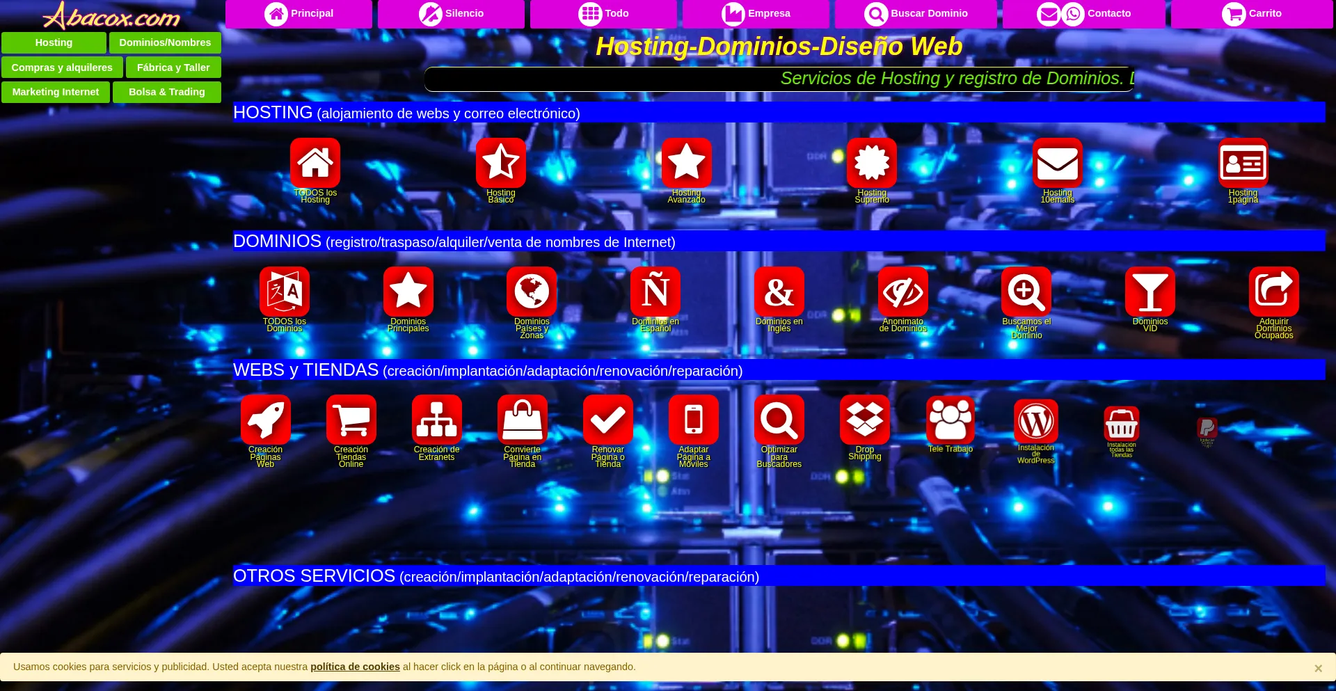 Servicios de Hosting y registro de Dominios. Diseño web, tiendas online, reparación o actualización de páginas web. Desarrollo de formularios y scripts (programas) a medida.