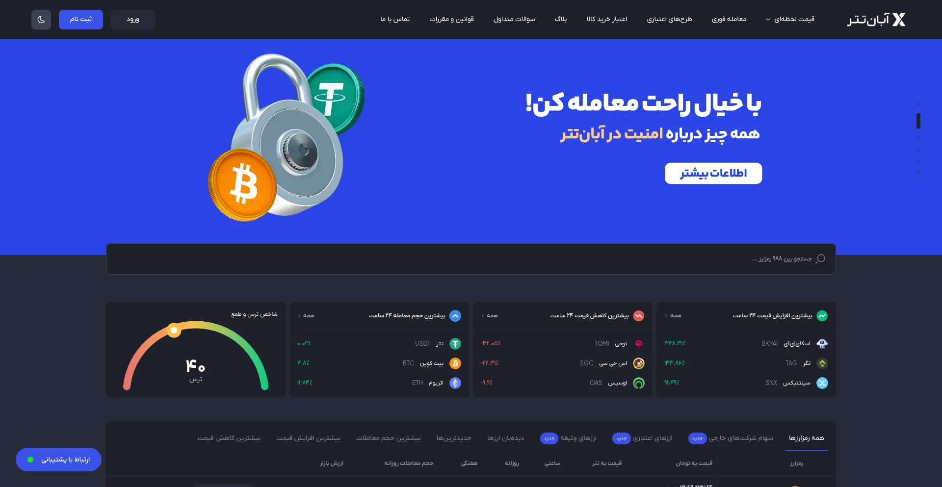 در صرافی ارز دیجیتال آبان تتر می‌توانید خرید و فروش بیش از ۹۰۰ ارز دیجیتال مختلف را بصورت امن و سر...