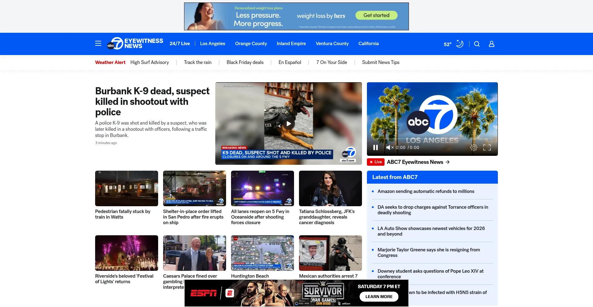Los Angeles' source for breaking news and live streaming video online. Covering Los Angeles, Orange County and all of the greater Southern California area.