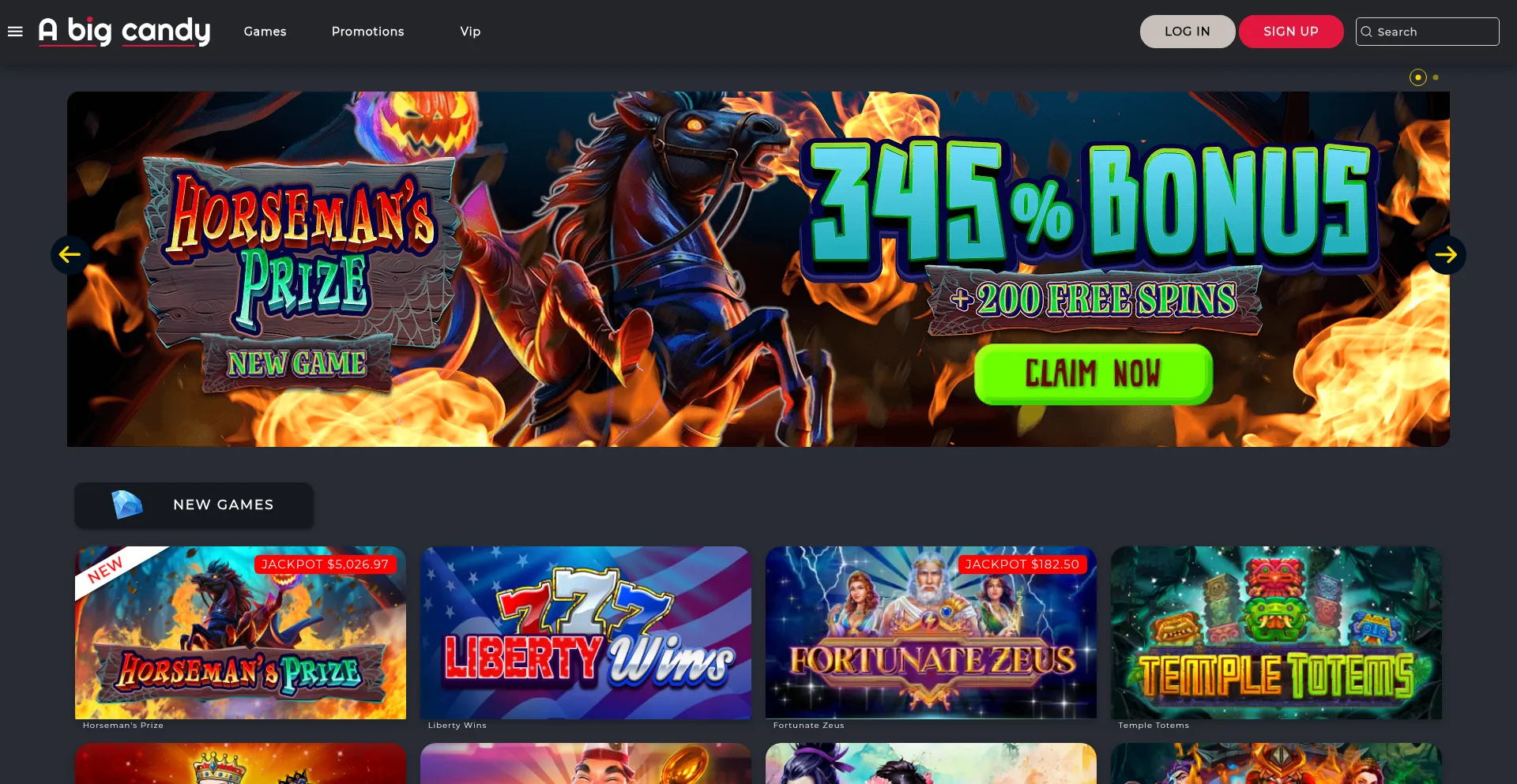 Take a bite of big, sumptuous wins at A Big Candy Online Casino. Unwrap a 345% Signup Bonus plus a 200 Free Spins on your 1st deposit.