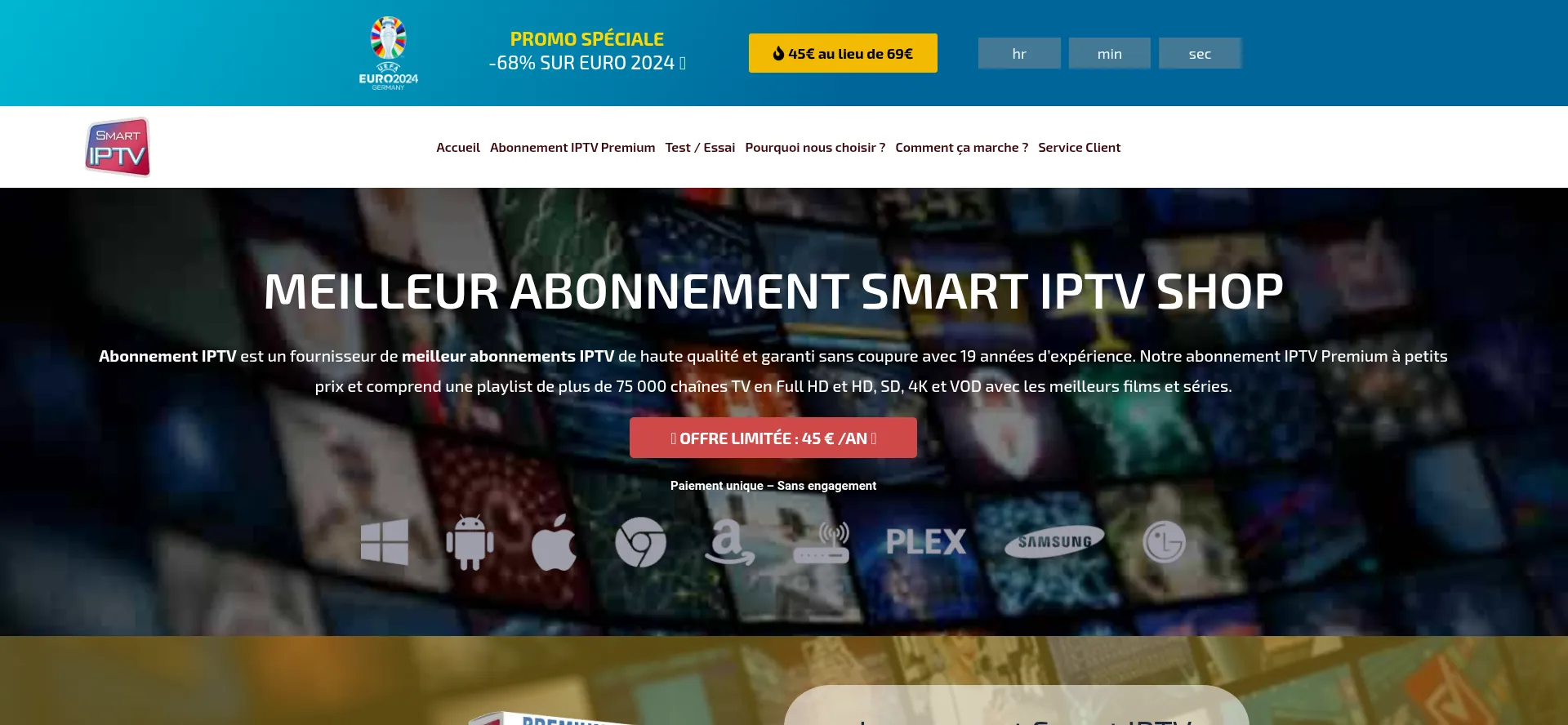 Our analyzer determines that website abonnement-smart-iptv.fr is using WordPress CMS. WordPress is the most popular content management system, powering over 43% of websites globally.