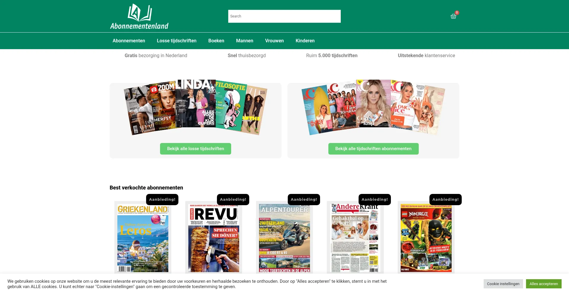 Analysis indicates that abonnementenland.nl operates as an e-commerce platform facilitating online transactions for goods or services. The website implements shopping cart functionality, payment processing systems, and product catalog features typical of commercial retail operations.