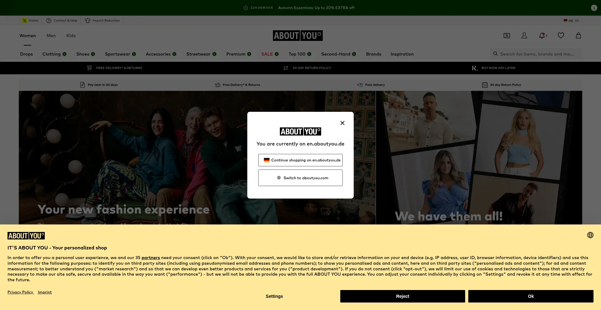 Analysis indicates that aboutyou.de operates as an e-commerce platform facilitating online transactions for goods or services. The website implements shopping cart functionality, payment processing systems, and product catalog features typical of commercial retail operations.