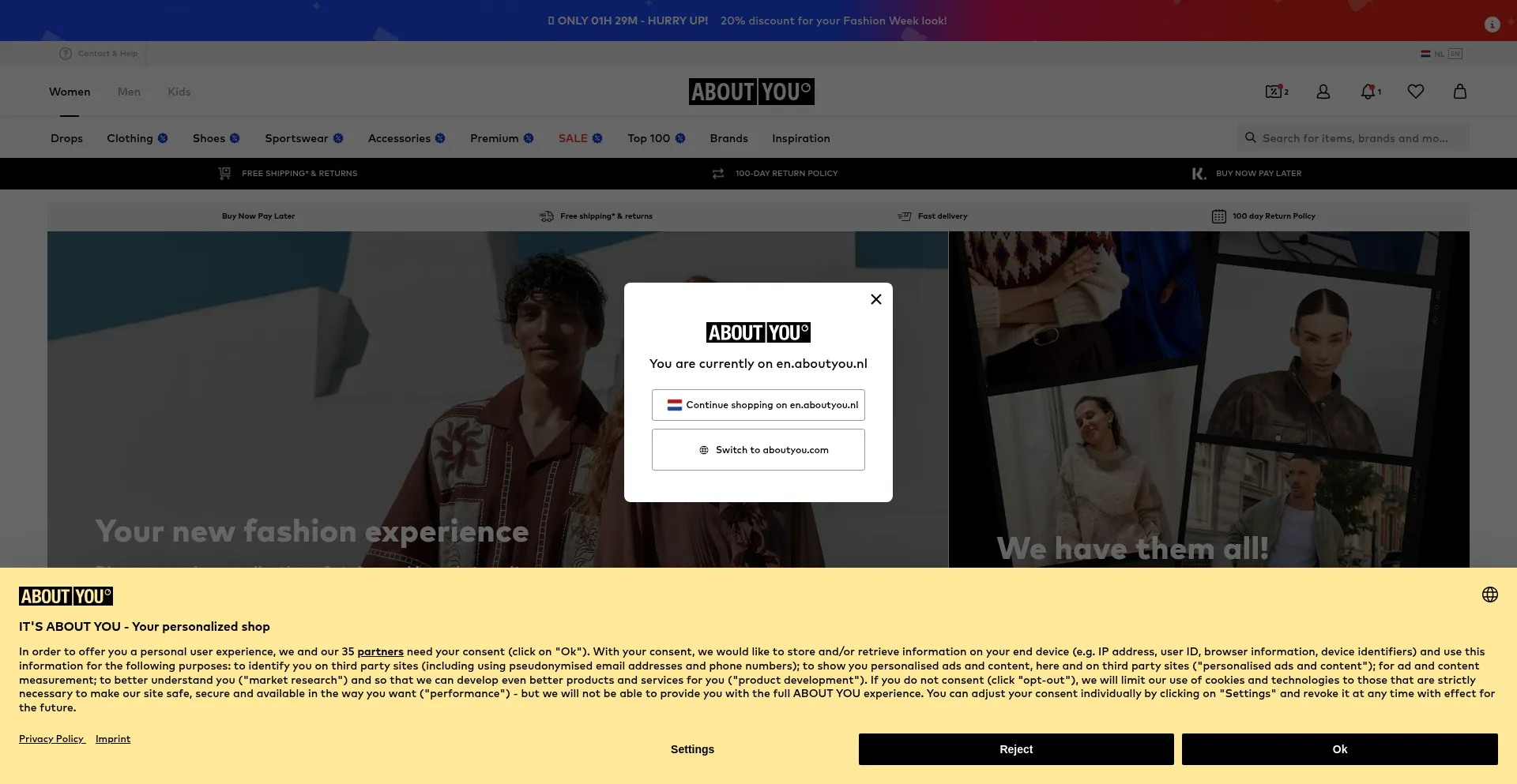 Analysis indicates that aboutyou.nl operates as an e-commerce platform facilitating online transactions for goods or services. The website implements shopping cart functionality, payment processing systems, and product catalog features typical of commercial retail operations.