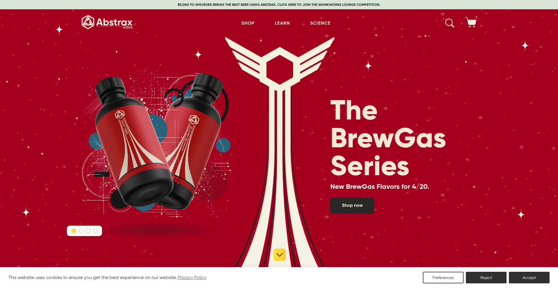 The abstraxhops.com website uses Google Tag Manager to add and update tracking tags on its website.