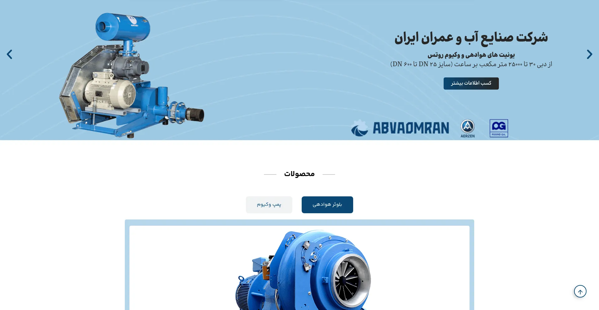 آب و عمران ایران، تولید کننده و تعمیرکننده انواع بلوئرهای صنعتی و نیمه صنعتی، پمپ وکیوم و بلوئر س�...