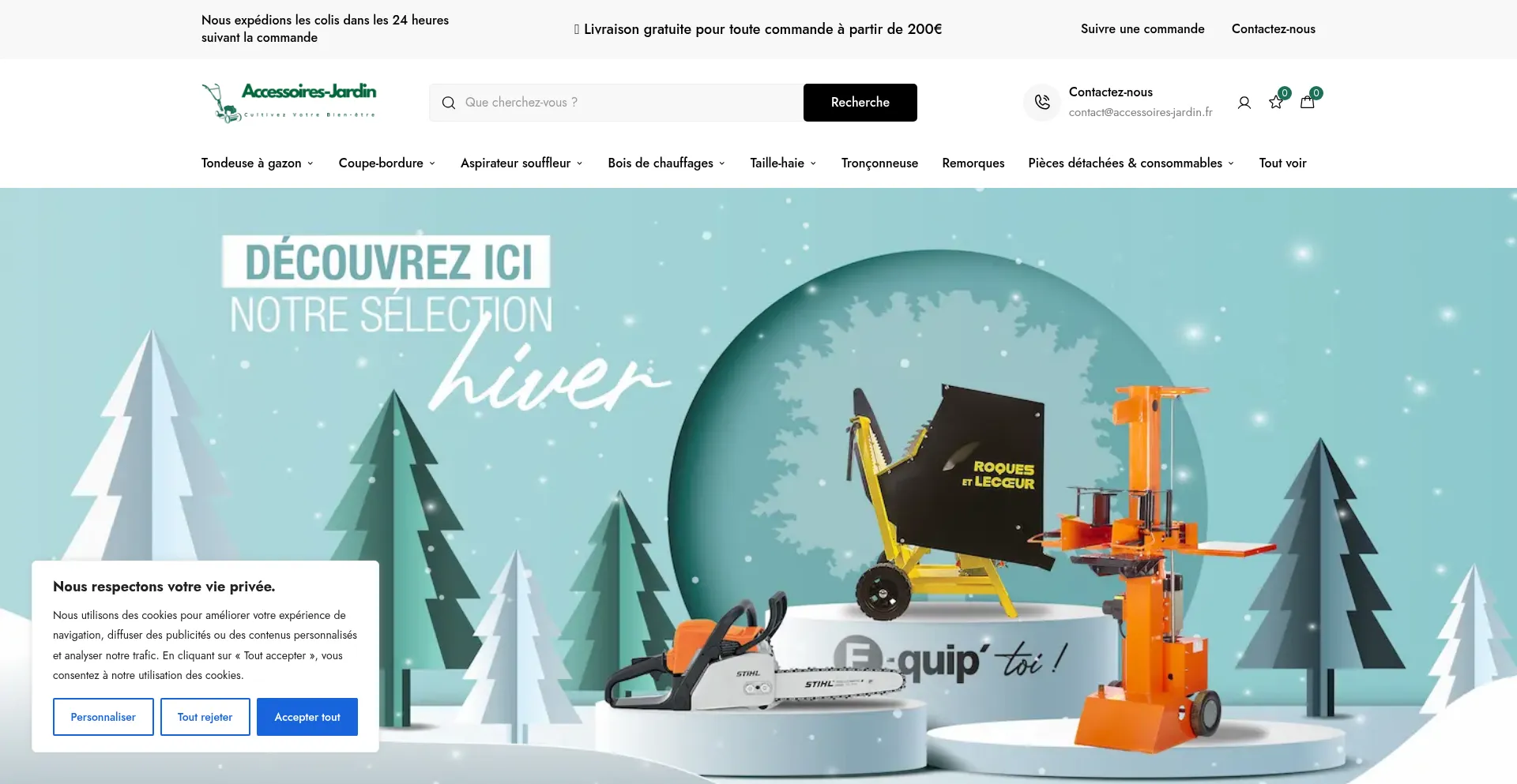 Analysis indicates that accessoires-jardin.fr operates as an e-commerce platform facilitating online transactions for goods or services. The website implements shopping cart functionality, payment processing systems, and product catalog features typical of commercial retail operations.