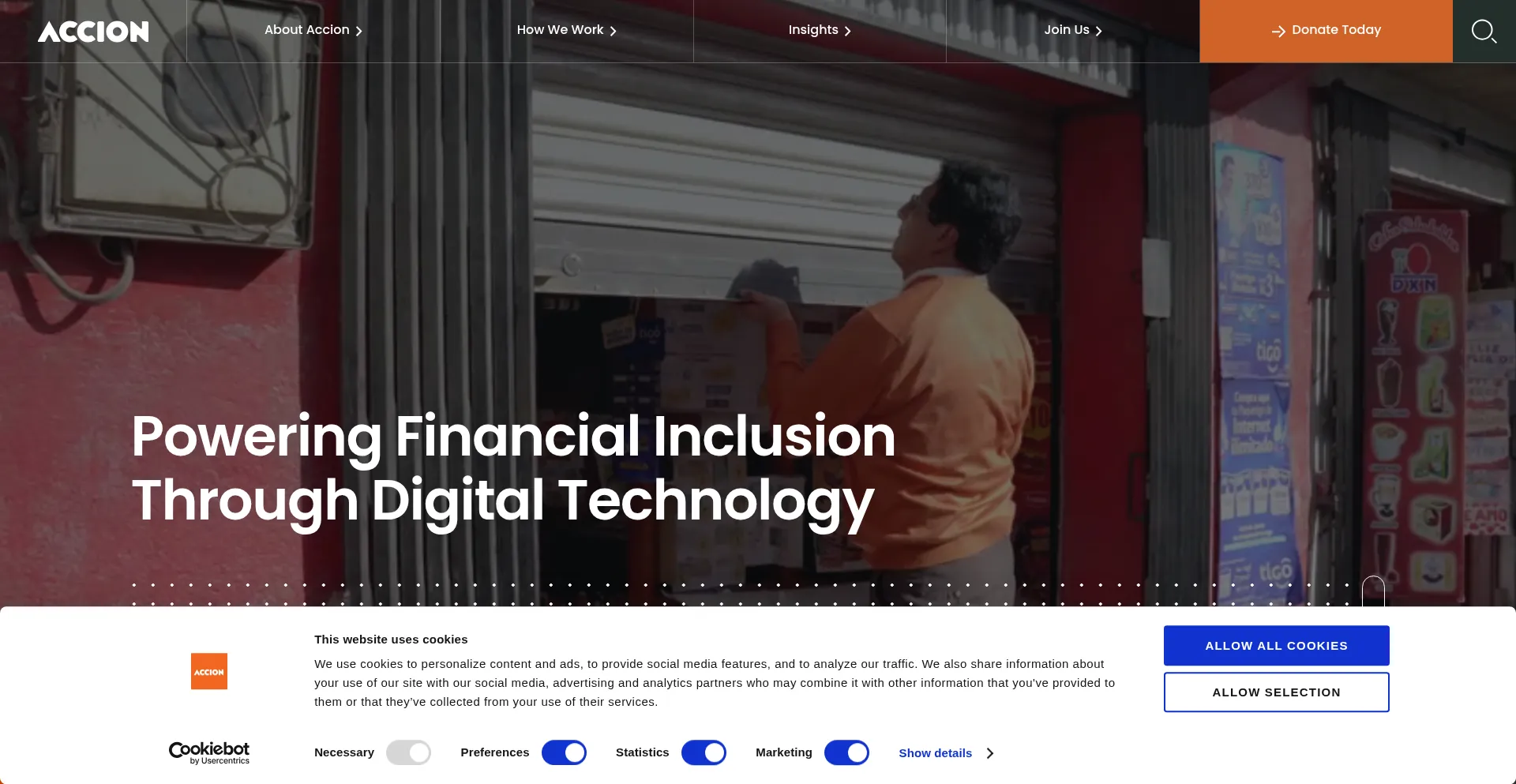 The website implements cookie consent mechanisms in compliance with privacy regulations such as GDPR or CCPA. This demonstrates that accion.org adheres to data protection standards and provides users with control over personal data collection practices.