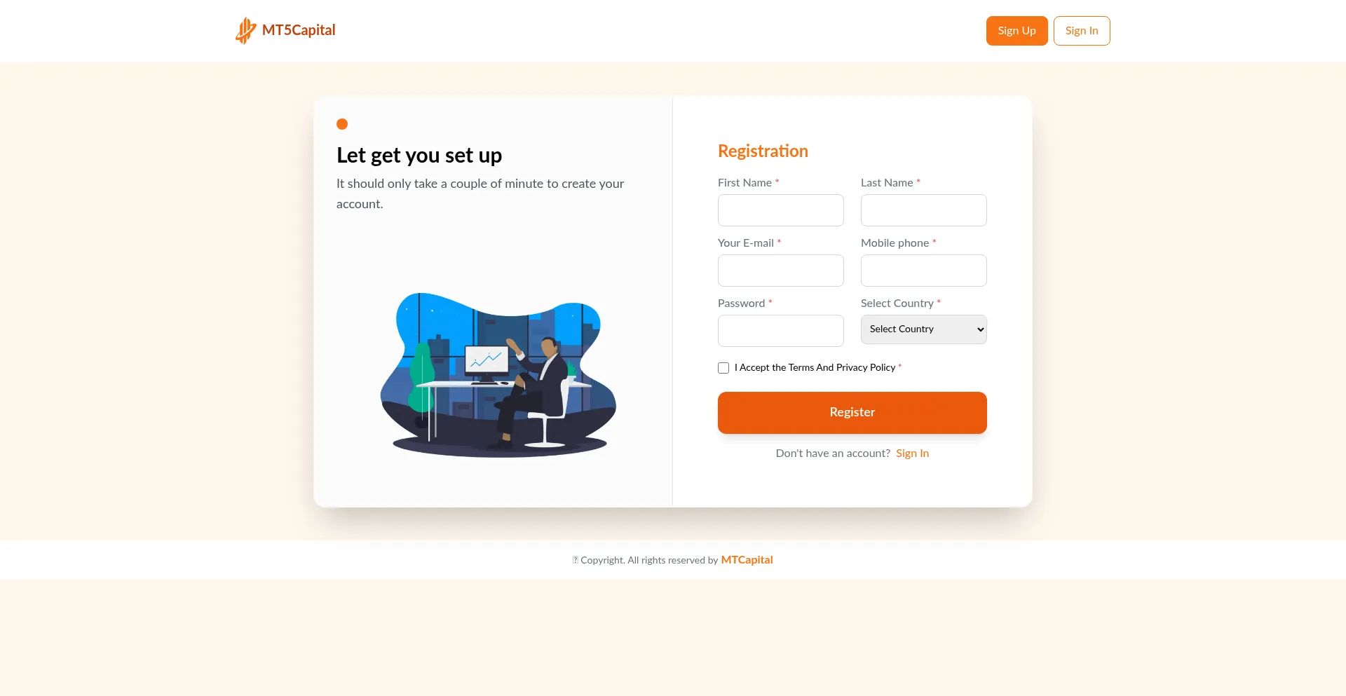 The account.mt5capital.com website implements data collection forms that may request personal information including names, email addresses, phone numbers, or other sensitive details. Users should verify the legitimacy of it and review privacy policies before submitting personal data.