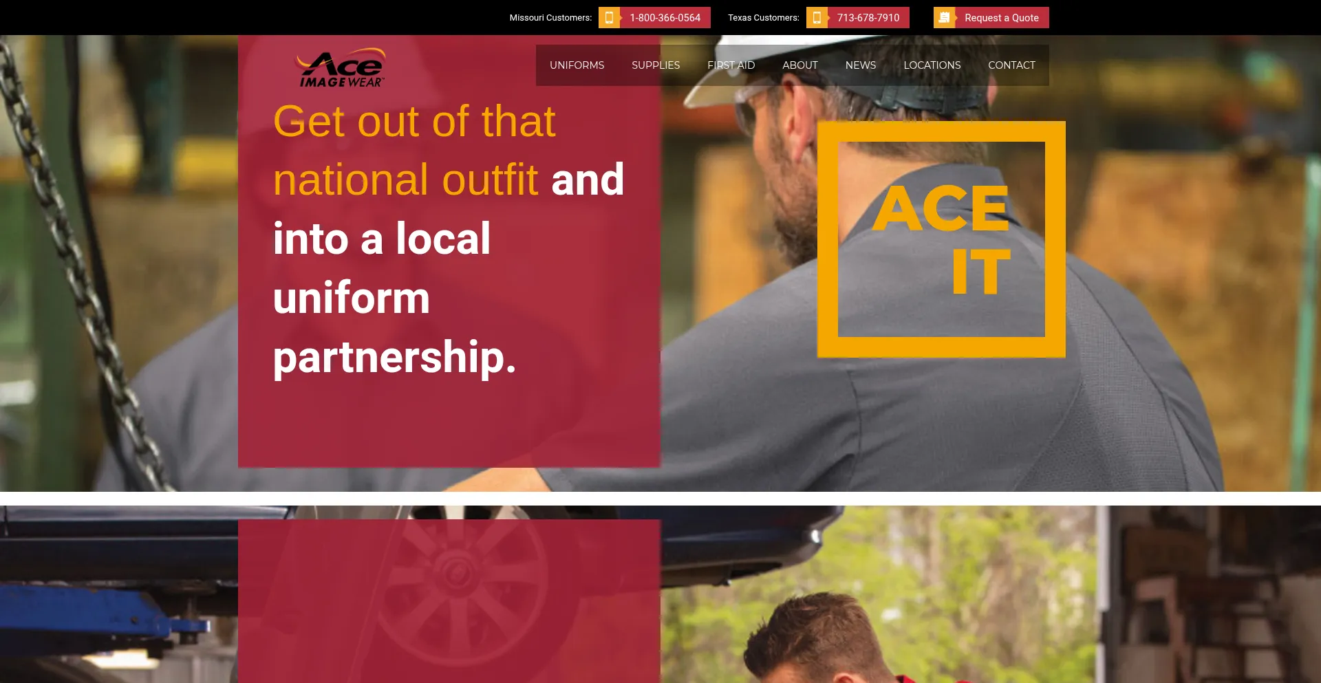 Ace ImageWear is a family-owned uniform rental company serving businesses throughout Kansas City, Missouri, and Houston, Texas.