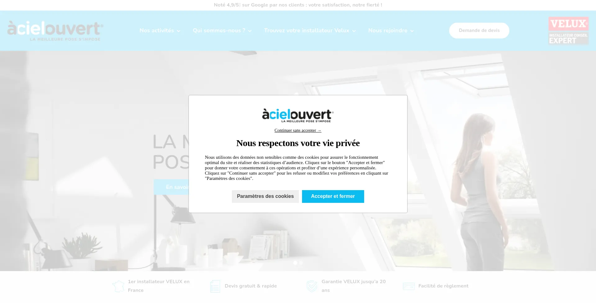 The acielouvert.com website uses Google Tag Manager to add and update tracking tags on its website.