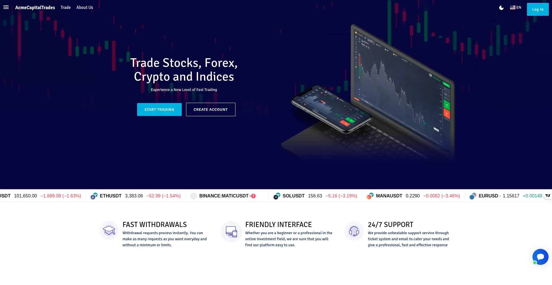 The acmecapitaltrades.com website provides financial services including investment management, wealth advisory, or financial planning solutions. Services may encompass portfolio management, investment opportunities, financial consulting, or asset growth strategies for individual and institutional clients.