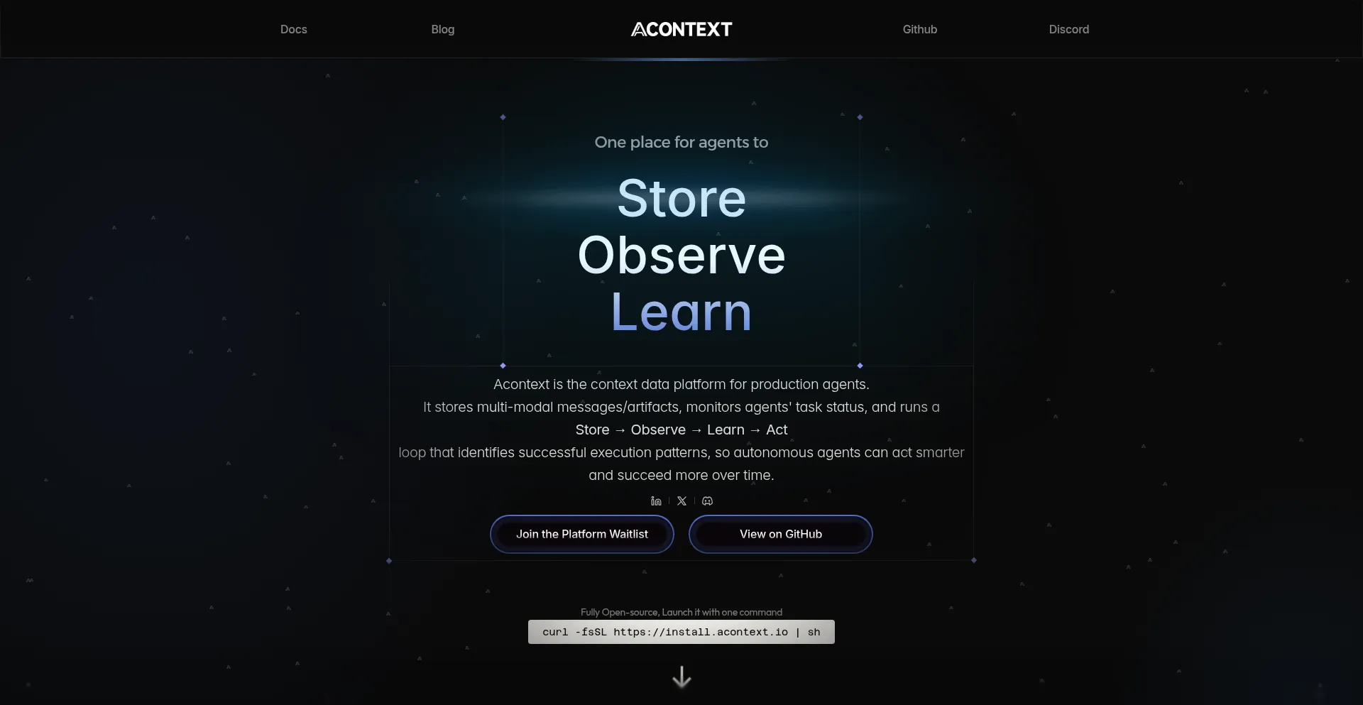 Build smarter, more reliable AI agents with Acontext, which unifies multi-modal context data storage, observability, and experience learning for production agents.