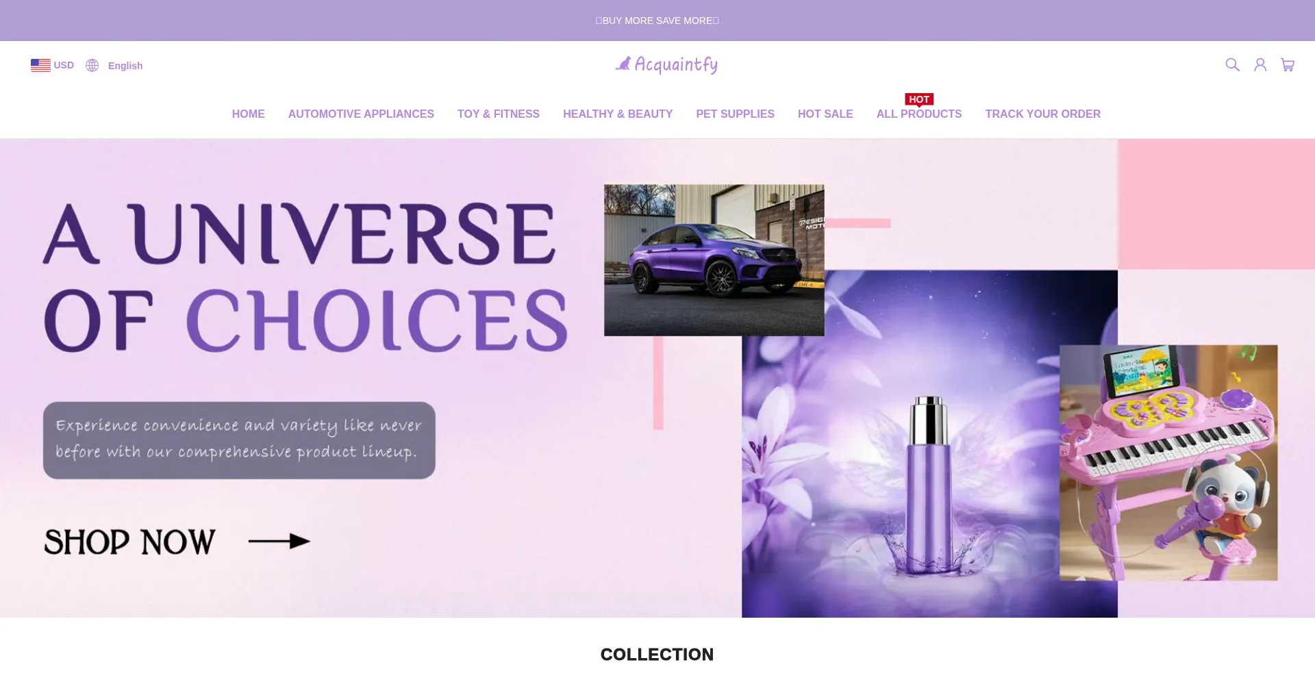 Analysis indicates that acquaintfy.com operates as an e-commerce platform facilitating online transactions for goods or services. The website implements shopping cart functionality, payment processing systems, and product catalog features typical of commercial retail operations.