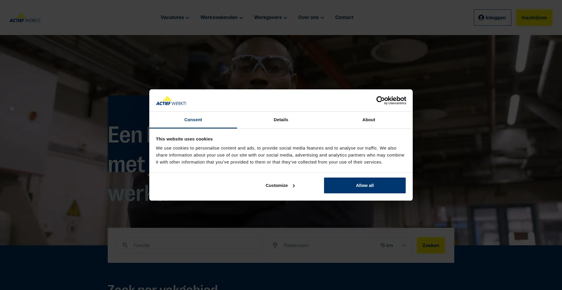The website implements cookie consent mechanisms in compliance with privacy regulations such as GDPR or CCPA. This demonstrates that actiefwerkt.nl adheres to data protection standards and provides users with control over personal data collection practices.