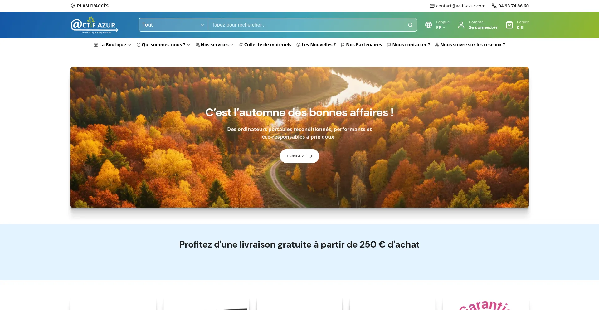 Analysis indicates that actif-azur.com operates as an e-commerce platform facilitating online transactions for goods or services. The website implements shopping cart functionality, payment processing systems, and product catalog features typical of commercial retail operations.