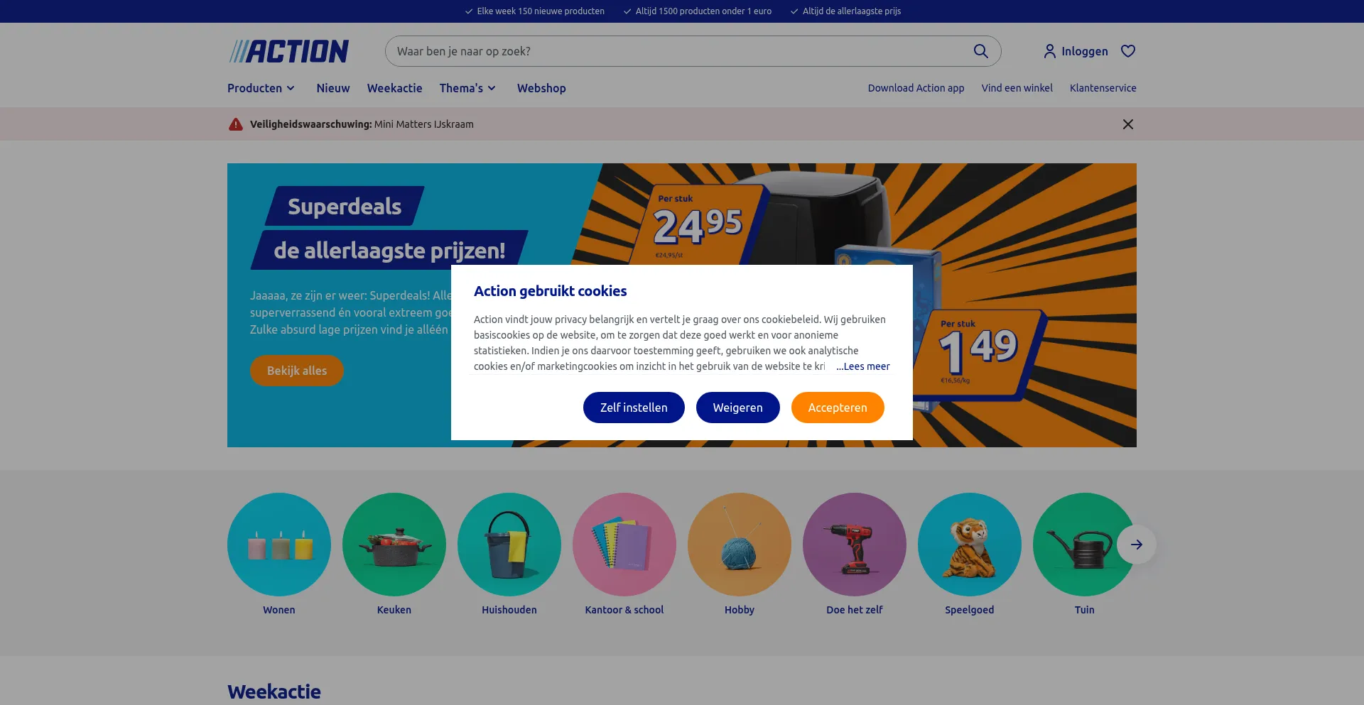 The website implements cookie consent mechanisms in compliance with privacy regulations such as GDPR or CCPA. This demonstrates that action.nl adheres to data protection standards and provides users with control over personal data collection practices.