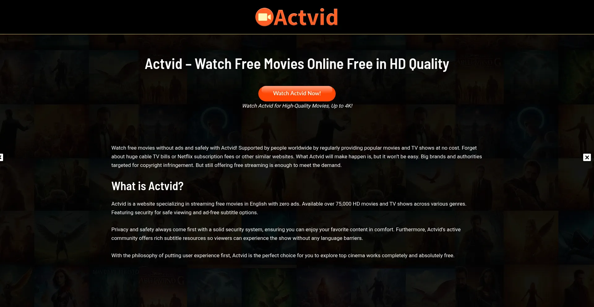 Actvid is a free movie streaming website offering over 75,000 titles in HD with subtitles and no ads. Watch FREE NOW!