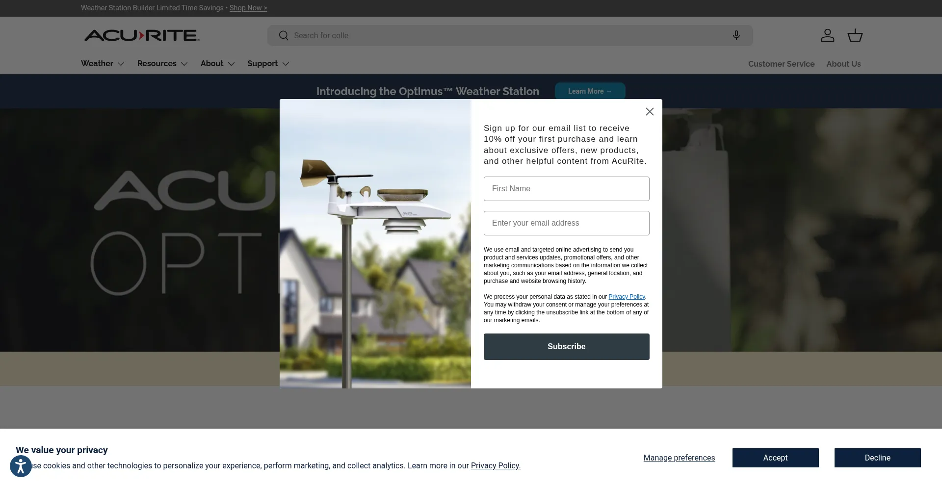 The acurite.com website implements data collection forms that may request personal information including names, email addresses, phone numbers, or other sensitive details. Users should verify the legitimacy of it and review privacy policies before submitting personal data.