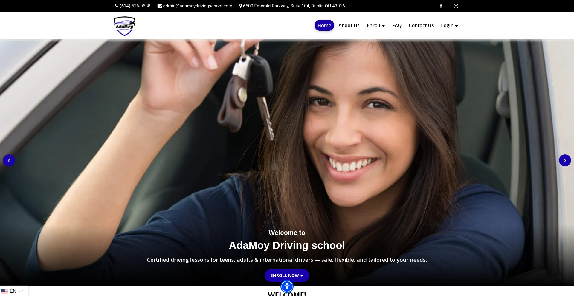 adamoydrivingschool.com uses Bootstrap, a widely-adopted open-source framework for responsive web development. Bootstrap enables efficient creation of mobile-friendly interfaces through standardized components and styling.