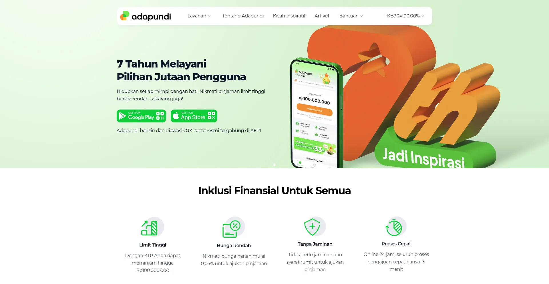 Pinjaman aman dipercaya hampir 30 juta pengguna, dengan 14 juta+ pencairan telah disalurkan, serta berizin dan diawasi selama 7 tahun. Download Adapundi sekarang!