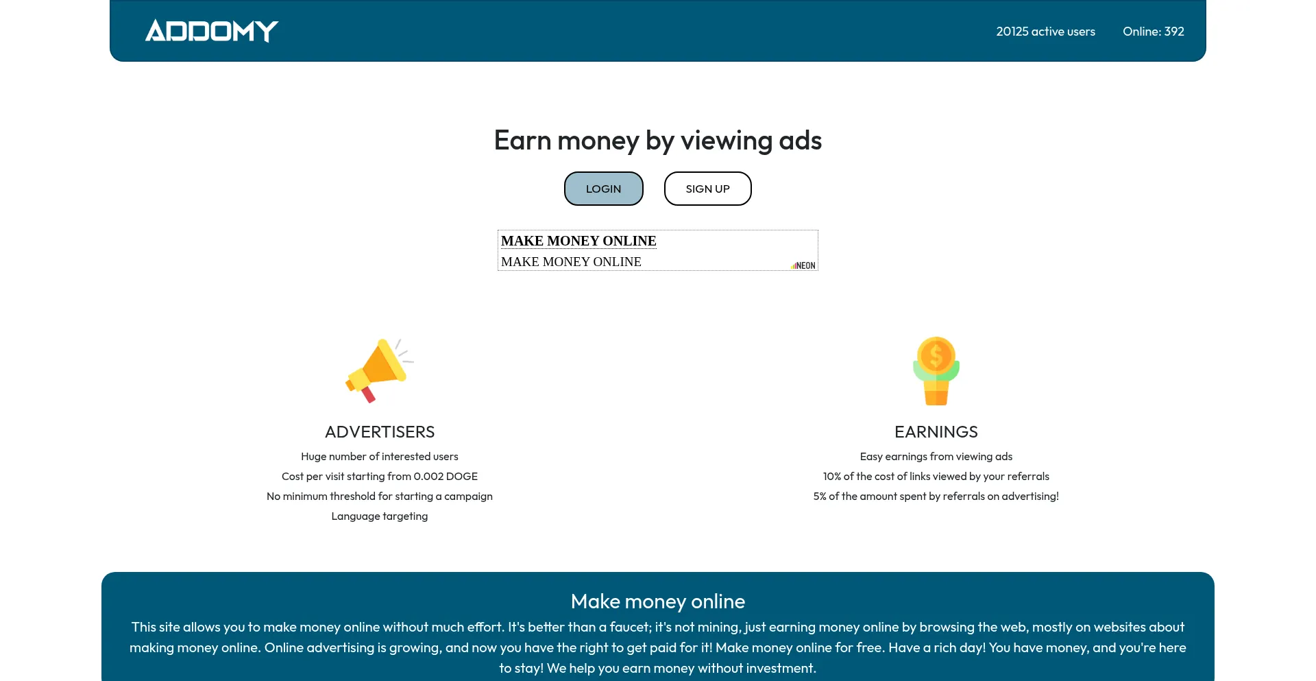 Addomy.com operates as a suspicious website with multiple red flags that compromise its trustworthiness and user safety. The platform exhibits concerning characteristics including misleading information, questionable operational practices, or potential malware distribution that poses significant risks to visitors.