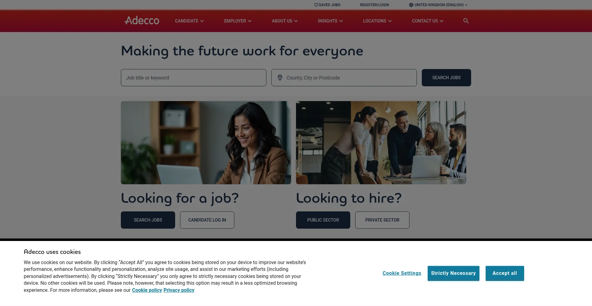 The website implements cookie consent mechanisms in compliance with privacy regulations such as GDPR or CCPA. This demonstrates that adecco.co.uk adheres to data protection standards and provides users with control over personal data collection practices.