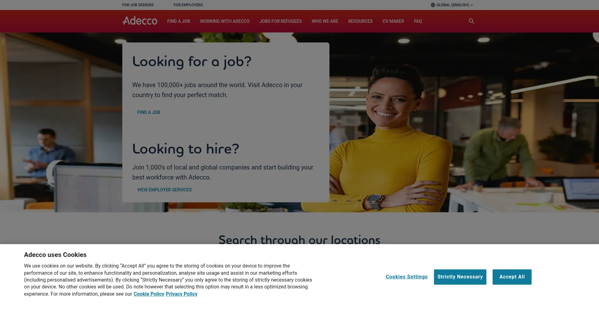 The website implements cookie consent mechanisms in compliance with privacy regulations such as GDPR or CCPA. This demonstrates that adecco.com adheres to data protection standards and provides users with control over personal data collection practices.