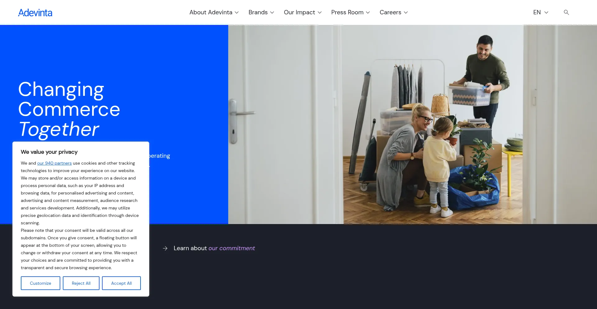 The website implements cookie consent mechanisms in compliance with privacy regulations such as GDPR or CCPA. This demonstrates that adevinta.com adheres to data protection standards and provides users with control over personal data collection practices.