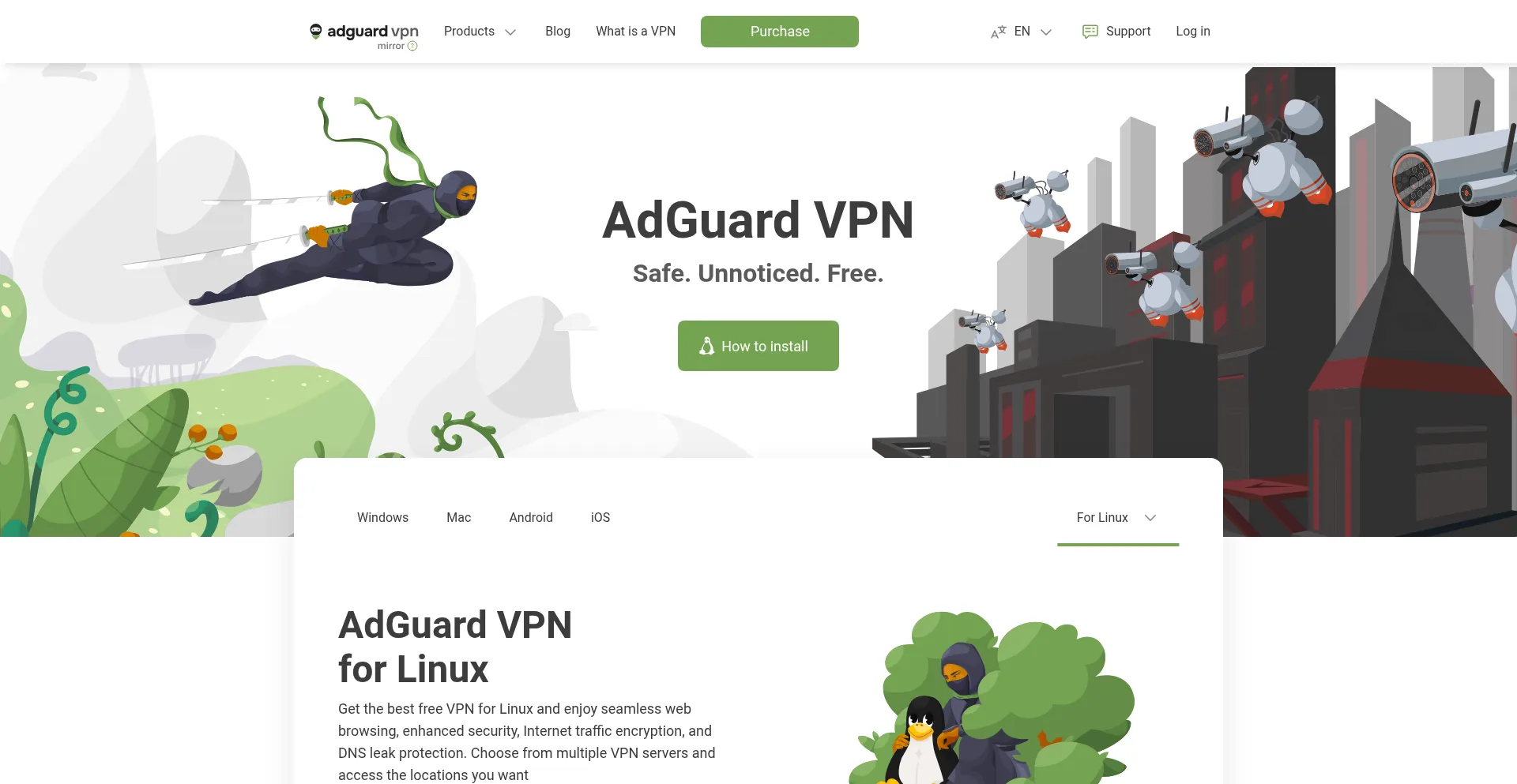 The adguard-vpn.cc website offers a mobile application for Android devices, indicating expanded platform presence beyond web-based services.