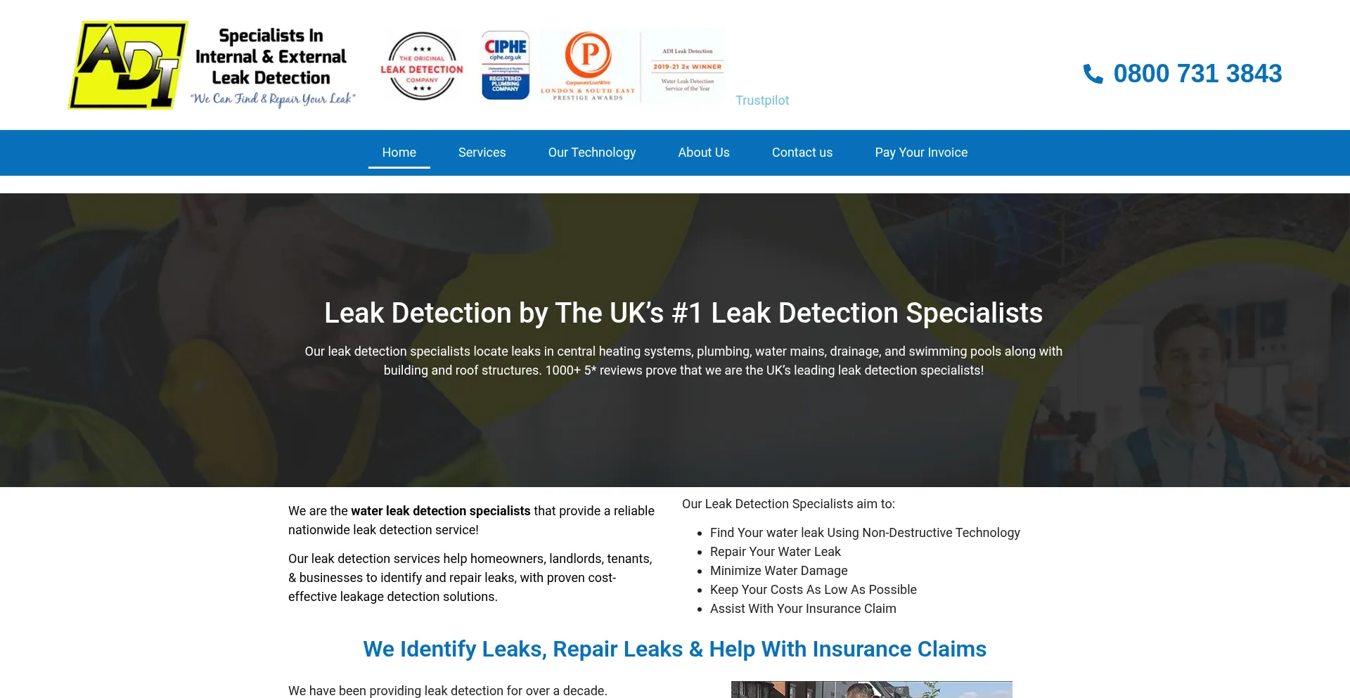The adileakdetection.co.uk website employs search engine optimization (SEO) techniques to improve its visibility and ranking in search engine results pages (SERPs).