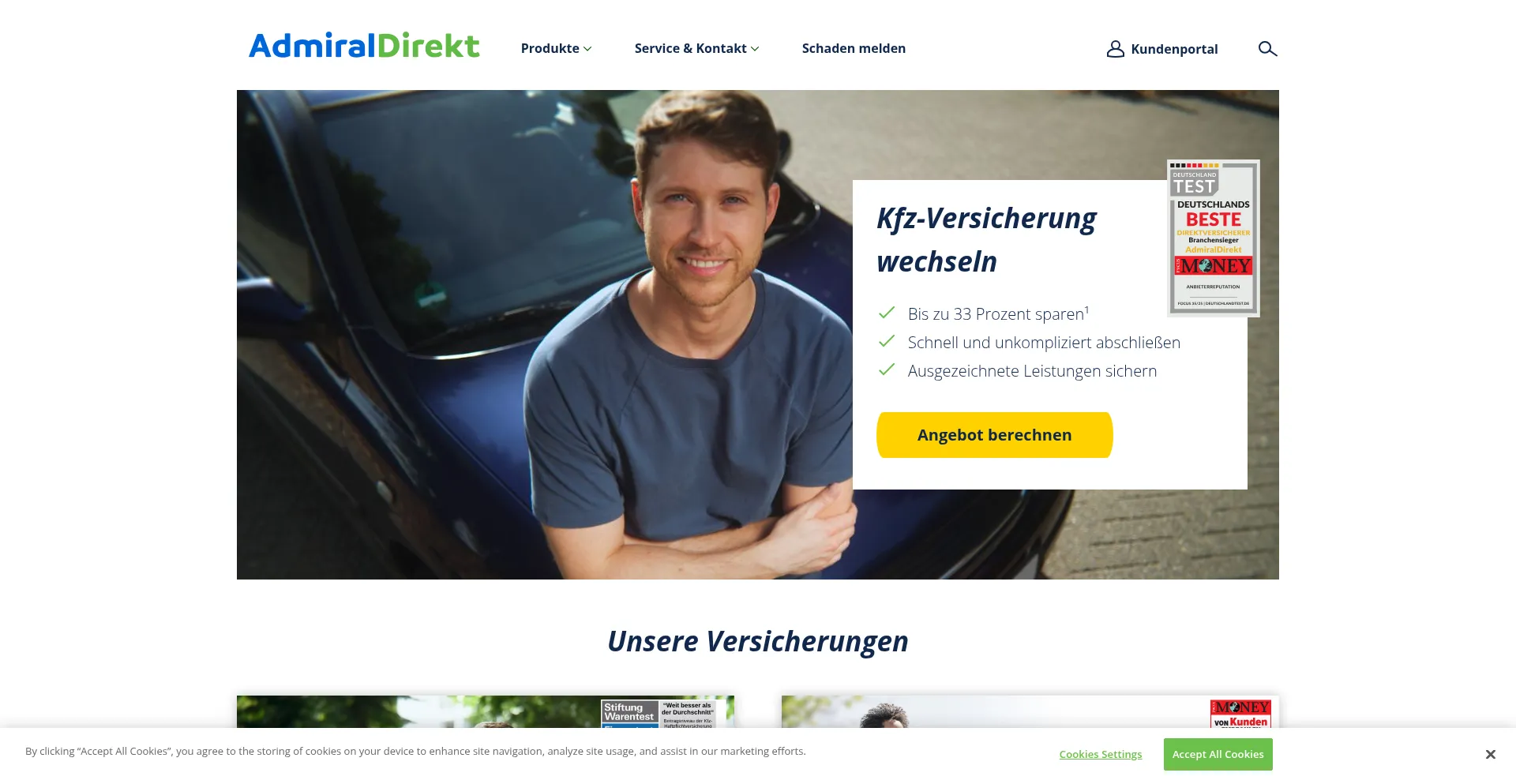 The website implements cookie consent mechanisms in compliance with privacy regulations such as GDPR or CCPA. This demonstrates that admiraldirekt.de adheres to data protection standards and provides users with control over personal data collection practices.