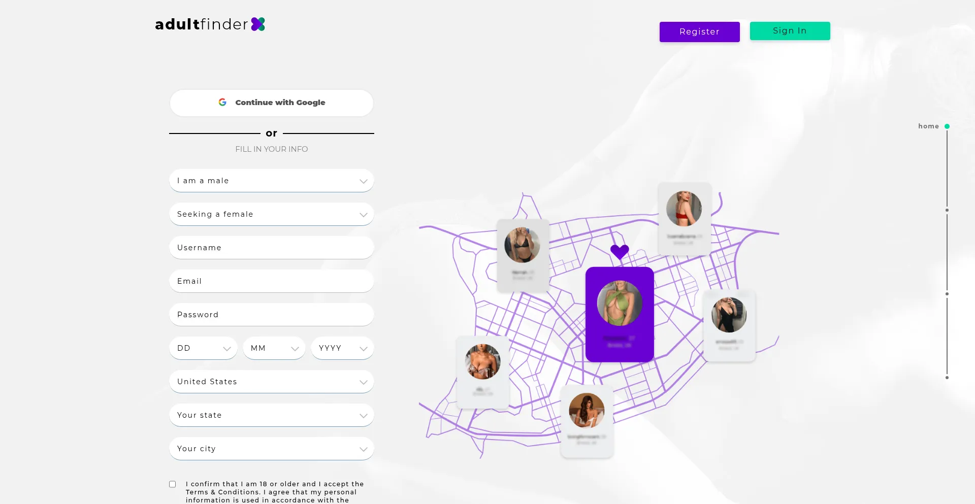 Adult, Reliable Payment Method, Registration Form, Google Sign-in