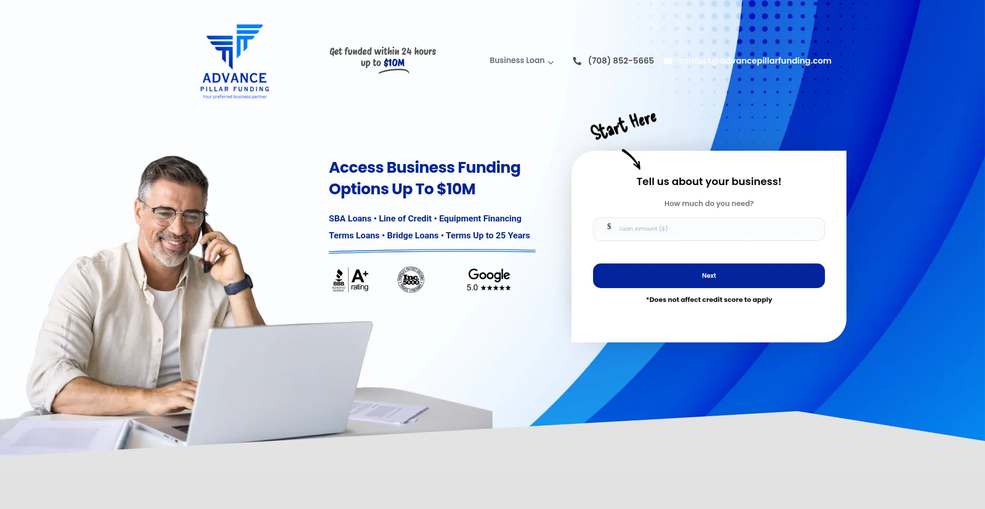The advancepillarfunding.com website implements data collection forms requesting personal information including names, email addresses, phone numbers, or other sensitive details. Users should verify the legitimacy of it and review privacy policies before submitting personal data.