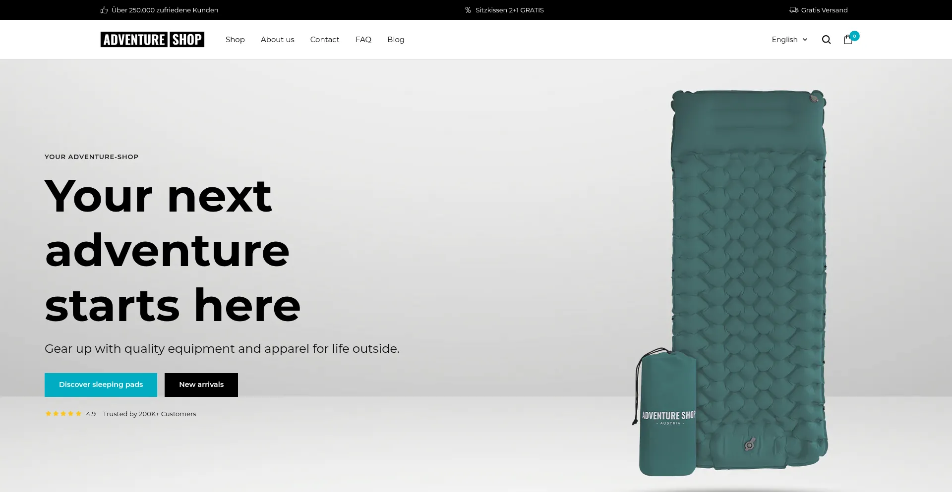 Adventure Shop - Dein Online-Shop für hochwertige Outdoor-Ausrüstung und Camping-Equipment. Entdecke Stirnlampen mit Red Light Modus, selbstaufblasbare Isomatte, portable Kaff...