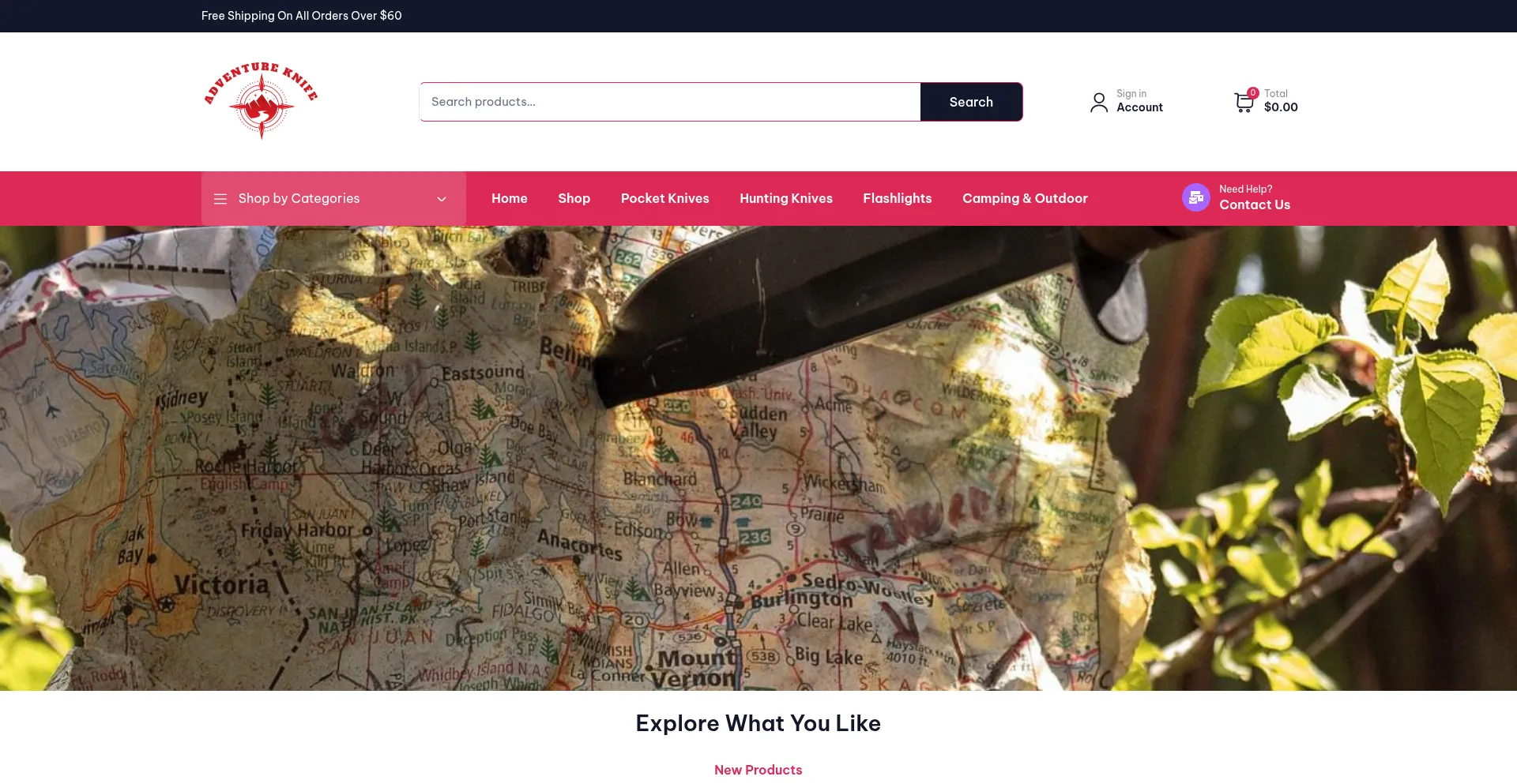 Analysis indicates that adventureknife.com operates as an e-commerce platform facilitating online transactions for goods or services. The website implements shopping cart functionality, payment processing systems, and product catalog features typical of commercial retail operations.