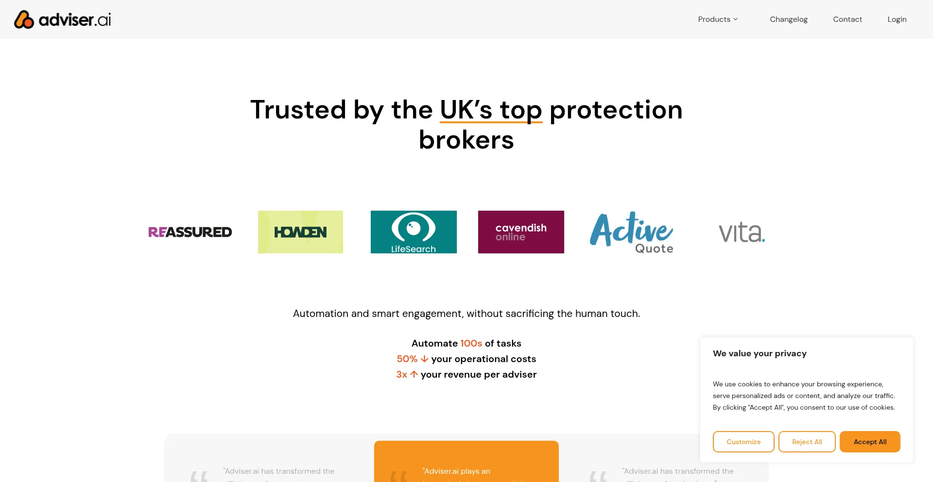 The website implements cookie consent mechanisms in compliance with privacy regulations such as GDPR or CCPA. This demonstrates that adviser.ai adheres to data protection standards and provides users with control over personal data collection practices.