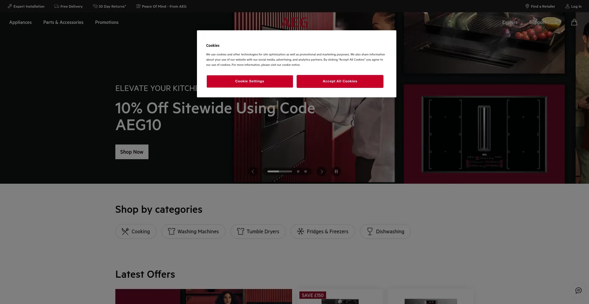 The website implements cookie consent mechanisms in compliance with privacy regulations such as GDPR or CCPA. This demonstrates that aeg.co.uk adheres to data protection standards and provides users with control over personal data collection practices.