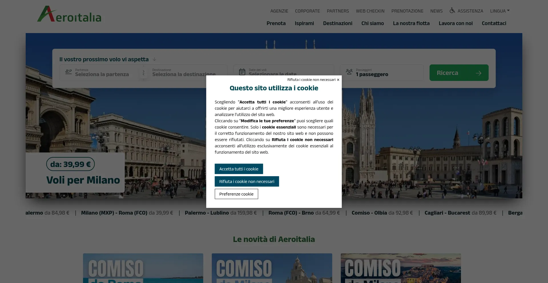The website implements cookie consent mechanisms in compliance with privacy regulations such as GDPR or CCPA. This demonstrates that aeroitalia.com adheres to data protection standards and provides users with control over personal data collection practices.