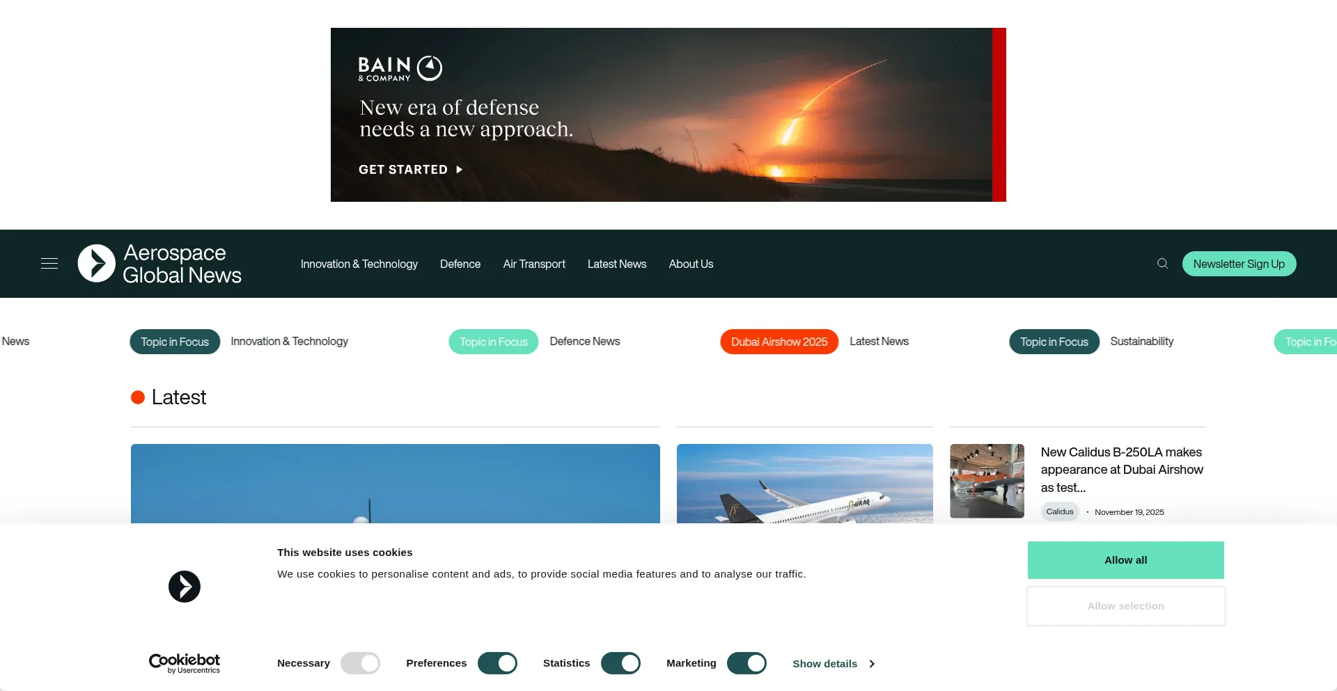 The website implements cookie consent mechanisms in compliance with privacy regulations such as GDPR or CCPA. This demonstrates that aerospaceglobalnews.com adheres to data protection standards and provides users with control over personal data collection practices.