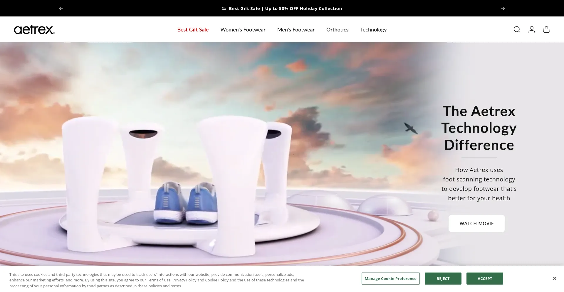 The website implements cookie consent mechanisms in compliance with privacy regulations such as GDPR or CCPA. This demonstrates that aetrex.com adheres to data protection standards and provides users with control over personal data collection practices.