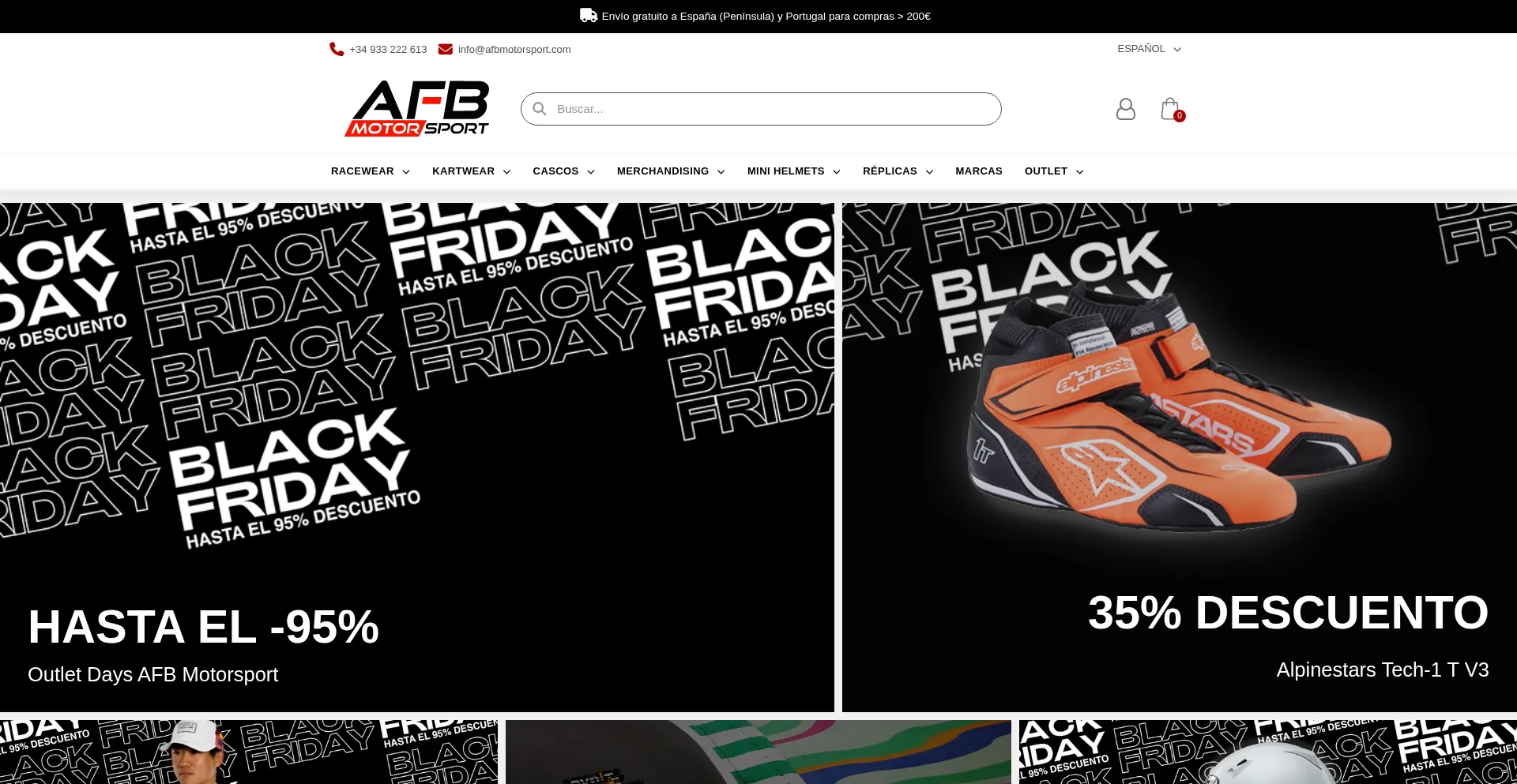 Ropa de competición motorsport y karting. Monos de carreras, cascos, guantes y botas de calidad de Bell, Alpinestars. Merchandising F1 y Moto GP.