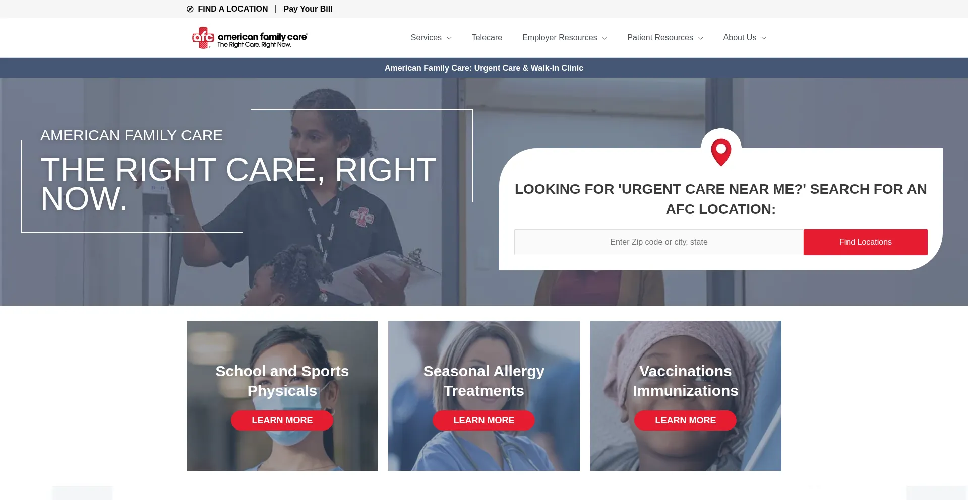 American Family Care urgent care centers and walk-in clinics provide the immediate healthcare services you need at a lower cost