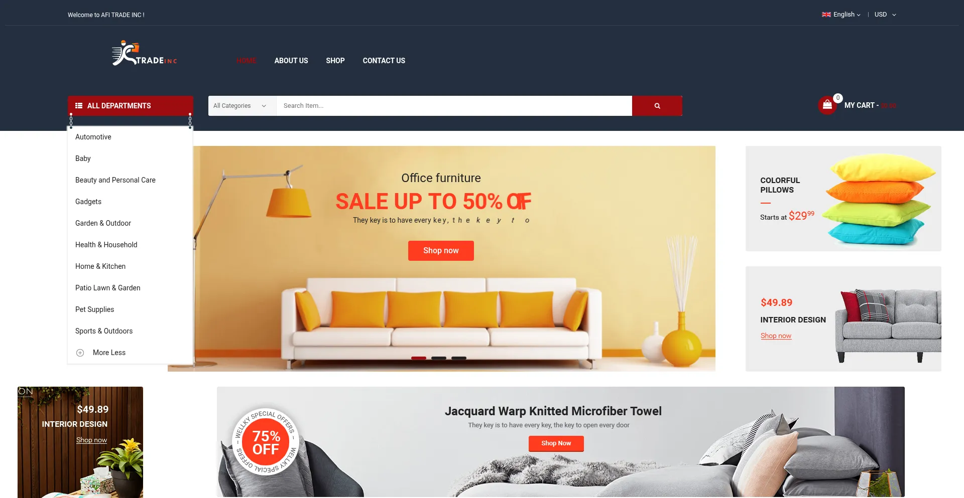 Analysis indicates that afitradeinc.com operates as an e-commerce platform facilitating online transactions for goods or services. The website implements shopping cart functionality, payment processing systems, and product catalog features typical of commercial retail operations.