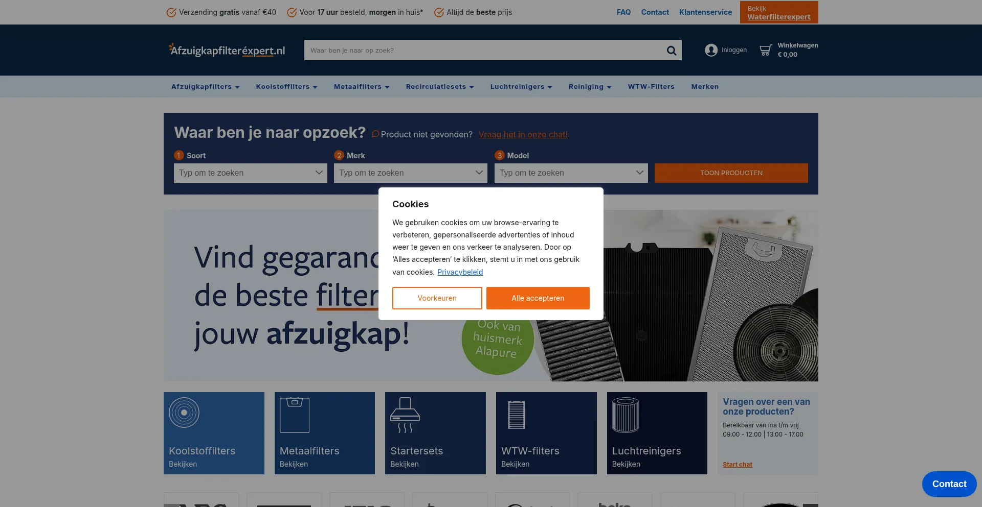 The website implements cookie consent mechanisms in compliance with privacy regulations such as GDPR or CCPA. This demonstrates that afzuigkapfilterexpert.nl adheres to data protection standards and provides users with control over personal data collection practices.